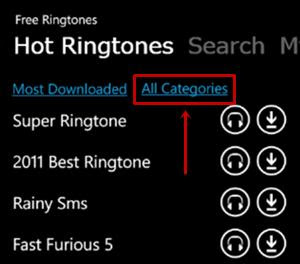 Você pode clicar em "All Categories", escolher uma de sua preferência e visualizar todos os "toques" disponíveis.