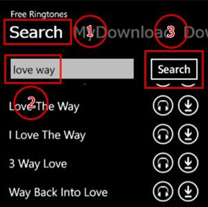 Caso deseja fazer uma pesquisa mais profunda, mais detalhada, vá em "Search" dígite a "palavra chave" e clique em "Search", que em português significa "Pesquisar". Os toques serão exibidos, você pode escutá-los e baixar os que gostar.